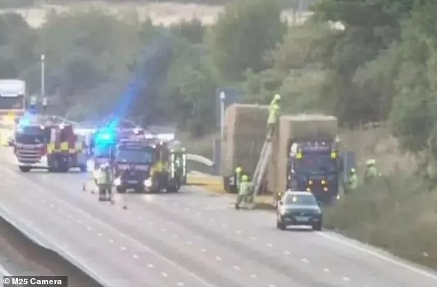 Sebuah truk yang membawa bal jerami terbakar antara Junction 25 di Enfield dan Junction 24 di Potters Bar