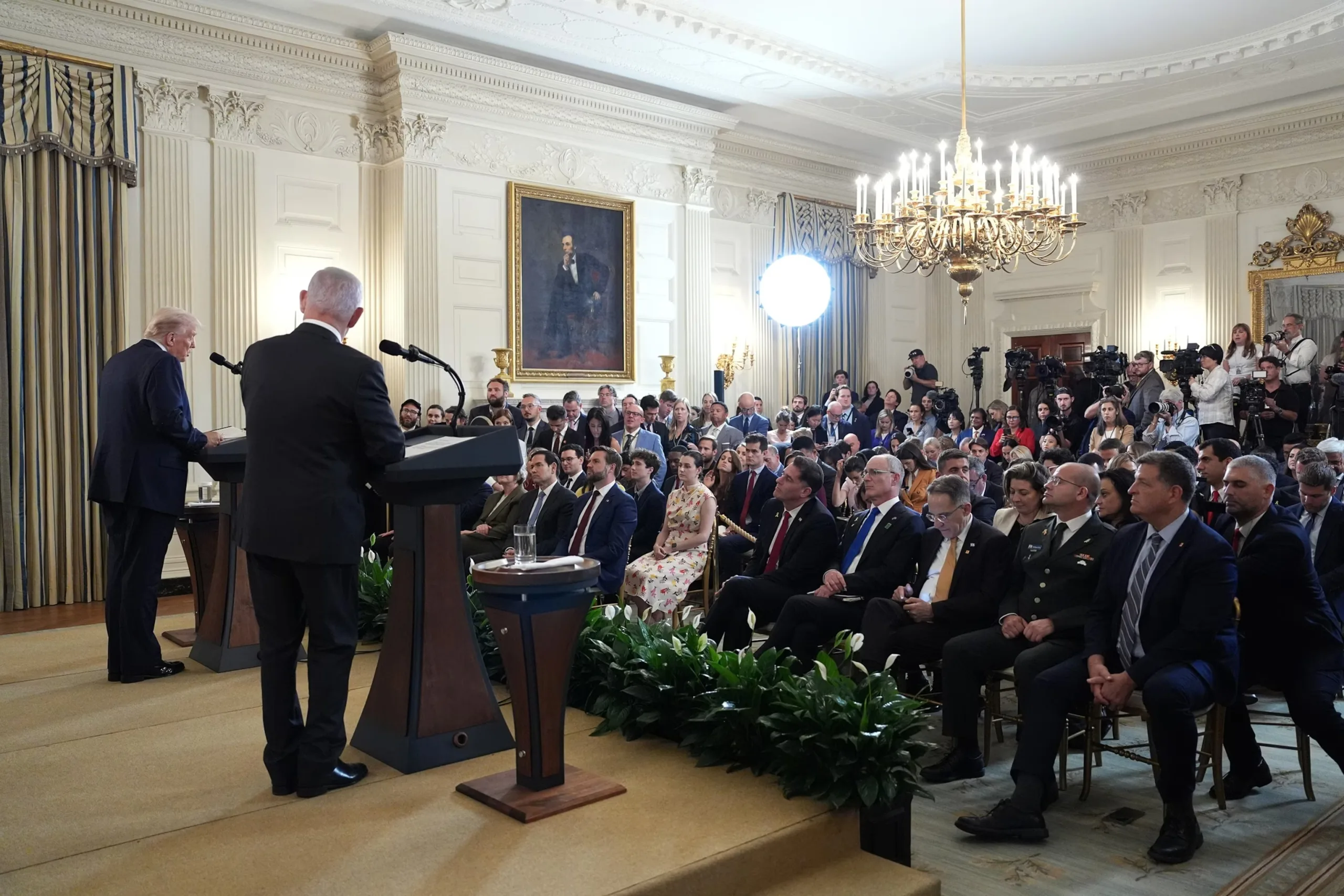Presiden Donald Trump dan Perdana Menteri Israel Benjamin Netanyahu tidak menerima pertanyaan di akhir komentar mereka.