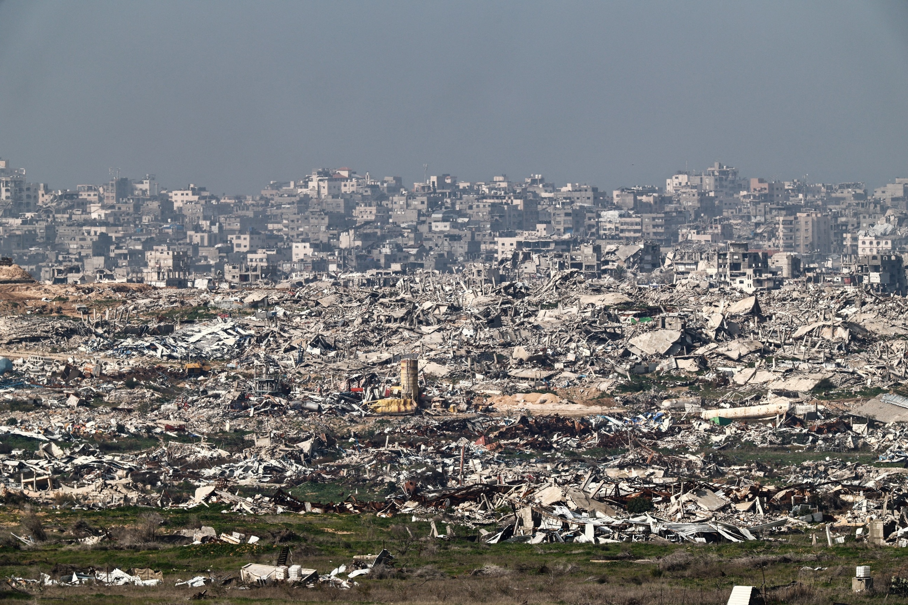 Kehancuran di Gaza terlihat dari sisi Israel di perbatasan Israel-Gaza di Israel selatan, 21 Januari 2026