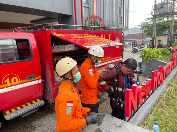 Petugas pemadam kebakaran saat melakukan pemadaman api di Hotel New Holiwood Pekanbaru. Foto: Resource for JPNN.