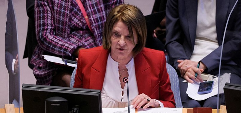 Duta Besar Norwegia untuk PBB Mona Juul berpidato di Dewan Keamanan PBB di Markas Besar PBB di Manhattan, New York City, New York, AS, 5 April 2022. (Foto File REUTERS)