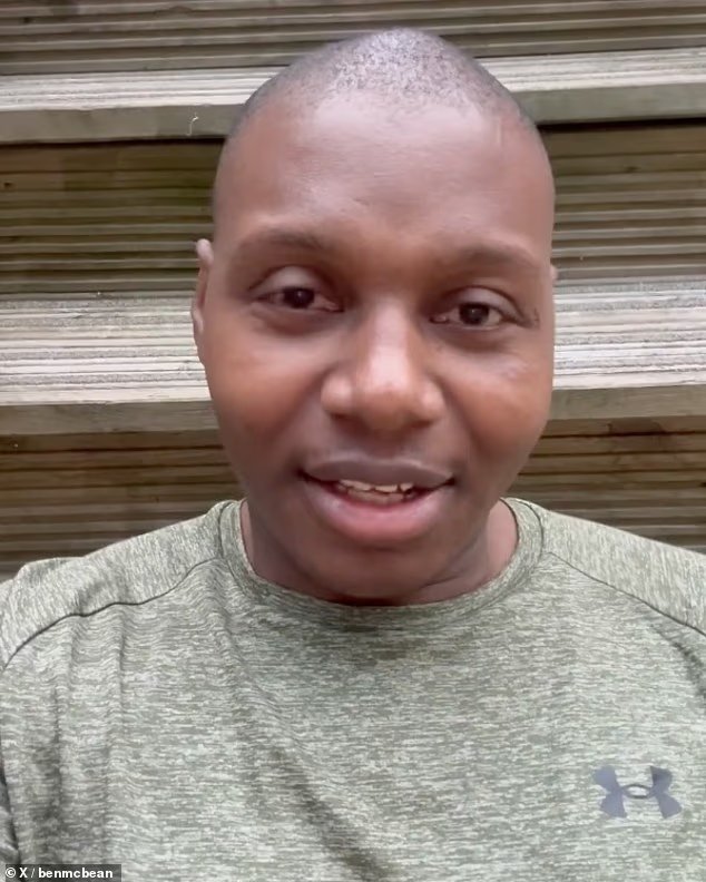 Mr McBean mengatakan kepada pengikutnya di X bahwa pertemuan itu membuatnya ‘mengamuk’ setelah dia hampir kehilangan nyawanya demi negaranya – dan ‘untuk orang-orang seperti dia’.