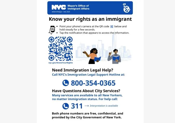 Materi “Kenali Hak Anda” tersedia dalam bahasa Inggris, Spanyol, Mandarin, Prancis, Bengali, Rusia, Arab, Kreol Haiti, Urdu dan Yiddish, bahasa yang digunakan oleh mereka yang paling terkena dampak penggerebekan imigrasi federal, menurut kantor walikota.