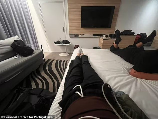 Dia bilang dia diserahkan voucher dengan nama -nama seorang wanita Jerman dan seorang pria Brasil yang akan dia bagikan kamar dengan malam itu.