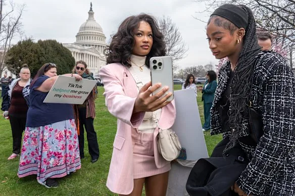 Pengguna Tiktok mengadvokasi aplikasi di Washington tahun lalu.Kredit: Ap