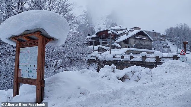 Saat kejadian itu, seluruh jalan diblokir. Karena lokasinya, lembah pegunungan tinggi di Piedmont sangat rentan terhadap hujan salju lebat dan bahaya longsoran salju.