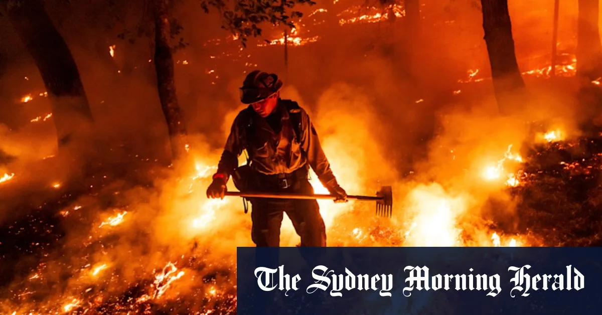 Seorang petugas pemadam kebakaran bertarung dengan api Pickett yang terbakar di daerah Aetna Springs di Napa County, California.Kredit:Foto AP/Nuh Berger