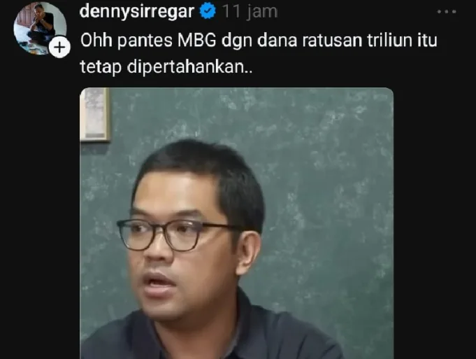 “Ohh pantes MBG dengan dana ratusan triliun itu tetap dipertahankan,” kata Denny di trheads @Dennysiregar, dikutip Minggu (28/9/2025).