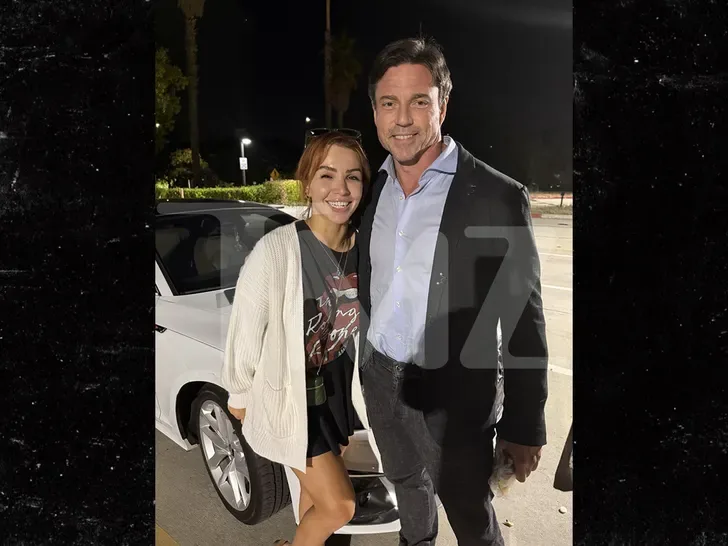 Coba lihat– suami yang terasing dari Denise Richards sedang menyeringai saat dia berpose dengan si budak yang berseri-seri. Dia berpakaian bagus … jeans gelap goyang dengan kancing biru muda yang dimasukkan ke dalam, ditambah jas hitam.