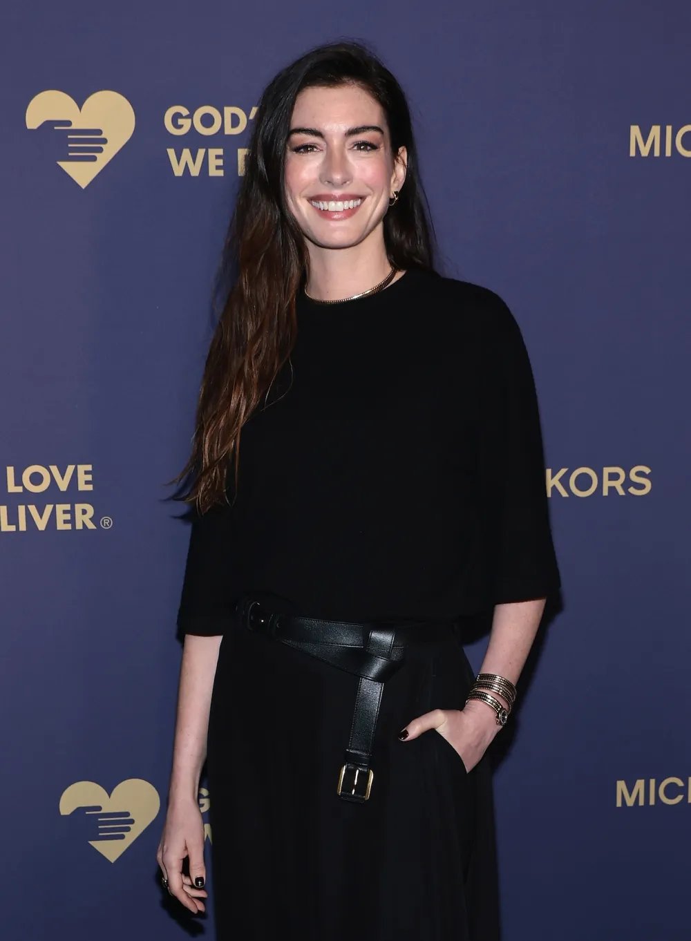 Itu Iblis Memakai Prada Bintang Hathaway tampil glamor dalam balutan busana serba hitam dan menata rambutnya tergerai untuk acara tersebut. Selain berpose sendiri di depan kamera, ia mengambil foto dengan peserta papan atas termasuk model Gigi Hadidperancang busana Michael Kors dan sesama penerima penghargaan Audra McDonald.