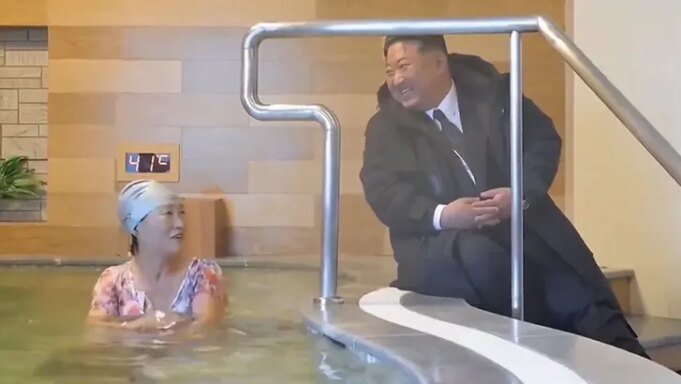 Teman-teman Kim tampak sangat senang melihat pemimpin gemuk itu dan sebaliknya, bahkan Kim berbaur dengan beberapa gadis berbaju renang Korea Utara. Kim duduk di tepi kolam air panas, mencelupkan tangannya ke dalam air… tapi, dia tidak pernah mengganti pakaian renangnya untuk menyelam.