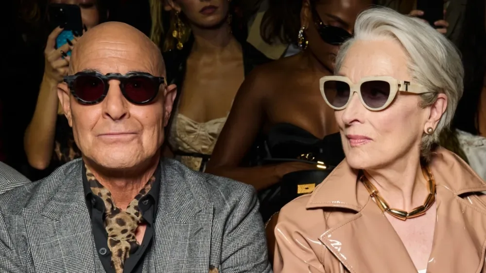 Streep, Tucci dan Ashley duduk berdampingan di barisan depan di acara landasan pacu musim semi 2026 acara, masing-masing berpakaian head-to-toe di Dolce & Gabbana. Streep mengenakan mantel parit vinil dari koleksi landasan pacu SS25, dengan kemeja lamé hewan, celana panjang ramping, sabuk cetak macan tutul, kopling bulu marlene faux macan tutul dan pompa hijau. Tucci memakai setelan wol berpreas tunggal yang didekonstruksi dengan kemeja katun hitam dan sifon cetak macan tutul foulard, sementara Ashley mengenakan korset tulle dengan cangkir satin dan detail boning satin di atas rok cristal mesh dengan kulot dair fw24-25. Dia membawa tas tangan kulit hitam mysicicily. Ketiganya memakai sikap serius karakter mereka yang paham dengan mode untuk durasi pertunjukan.