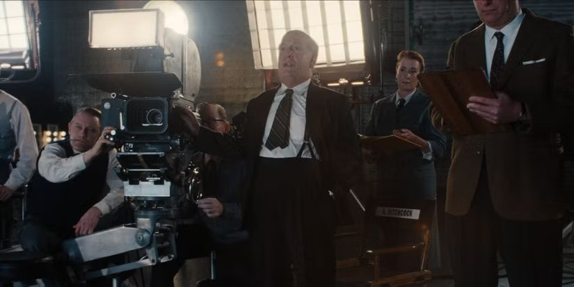 Raksasa menjalin perilaku Hitchcock yang lebih buruk dan jahat langsung ke dalam kengeriannya sendiri, juga, menampilkannya sebagai karakter lain yang kompleks, secara moral abu-abu, mengerikan dalam keanehan dan penyimpangannya sendiri. Pertunjukan tersebut menyoroti pola-pola yang sudah menjadi bagian dari hidupnya : pendekatan yang mengontrol aktris-aktrisnya, ketertarikan pada kekerasan, dan pernikahan yang terkenal aneh dan hampir jauh. Hal ini bahkan menarik persamaan halus antara hubungan Hitchcock dengan ibunya sendiri dan hubungan Ed Gein, menunjukkan bagaimana dinamika formatif keluarga dapat mempengaruhi sifat-sifat bermasalah di kemudian hari. Tapi itu juga mengarang fakta. Meskipun wanita yang bekerja dengannya, penulis biografi, dan Hitchcock sendiri mengakui kecenderungan voyeuristik dan rumor tentang lubang intip di kantor dan ruang ganti memang ada, tidak pernah terbukti atau terkonfirmasi bahwa sutradara memata-matai wanita seperti itu