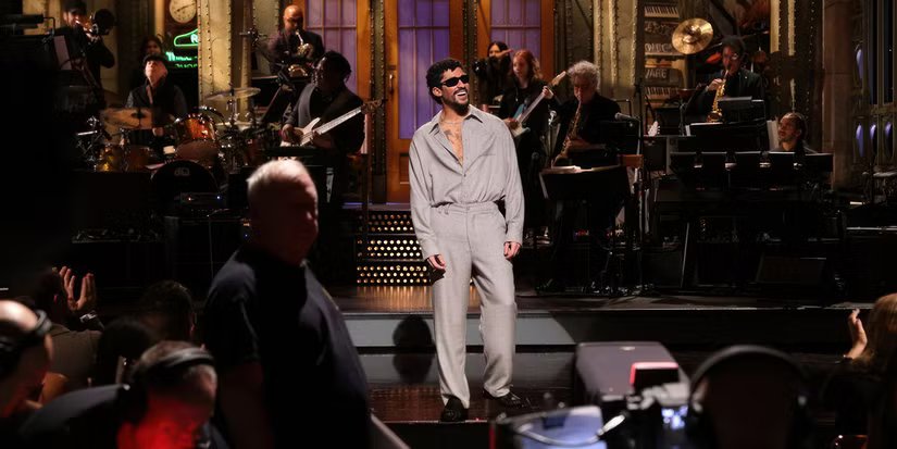 Bad Bunny di Studio 8H selama pemutaran perdana SNL Musim 51.