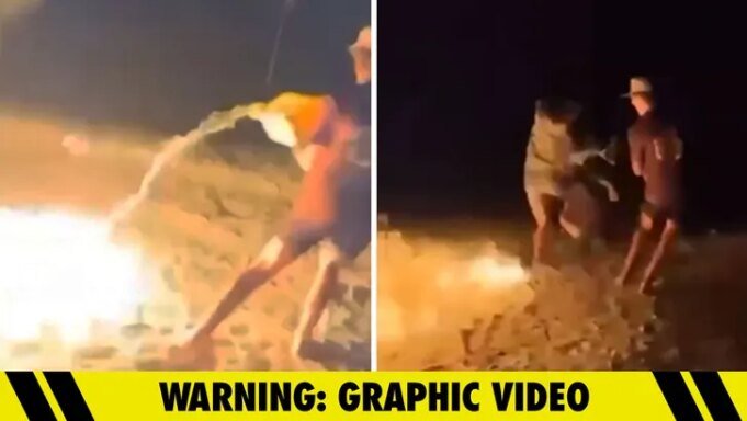 Kantor video Marion video clip mengatakan seorang anak berusia 17 tahun dalam sheriff viral terlihat membuat jejak bensin dari api unggun di pasir … dan memercikkan gas ke anak laki-laki lain yang duduk di dekatnya, menyebabkan dia terbakar. Anak itu berlari ke danau untuk memadamkan api.