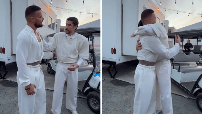 Keduanya berpelukan sementara penonton bertepuk tangan untuk para superstar.