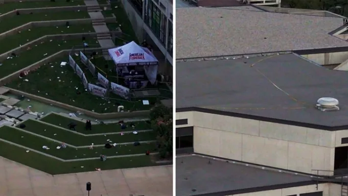 Menunjukkan atap di mana penembak diduga ditembakkan
