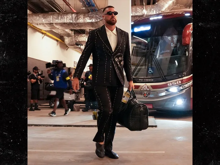 Travis KelceJelas menghabiskan waktu bersama Taylor Dan penjahit … ketika bintang Chiefs berhenti di pertandingan pembukaan musim Kansas City di Brasil terlihat segar dalam setelan khusus!