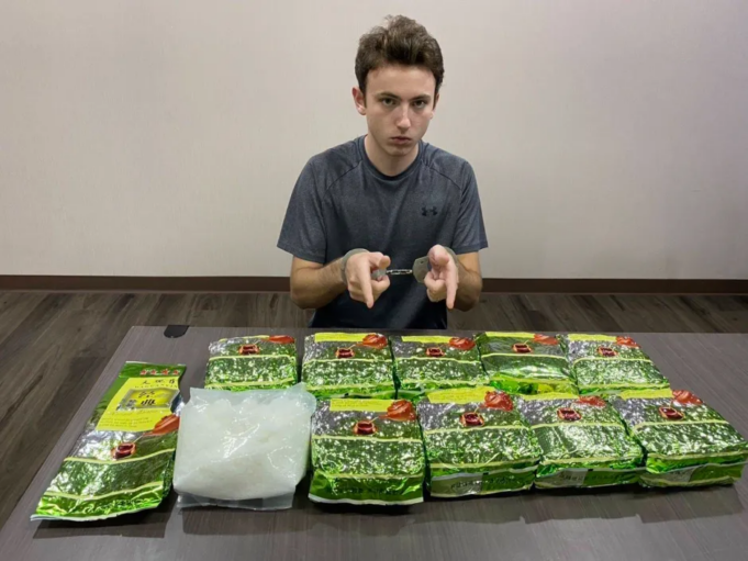 Warga Inggris tersebut bersikeras, “Saya tidak tahu apa itu,” namun dia ditangkap setelah petugas membuka tas dan melakukan tes untuk membuktikan bahwa obat tersebut adalah metamfetamin.