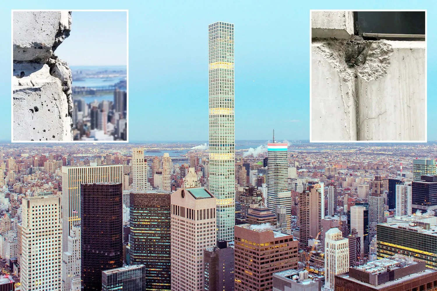 Fasad putih bersih 432 Park Avenue, sebuah menara mewah setinggi 96 lantai dan setinggi hampir 1.400 kaki, dilaporkan penuh dengan retakan, retakan, dan bongkahan beton yang hilang.
