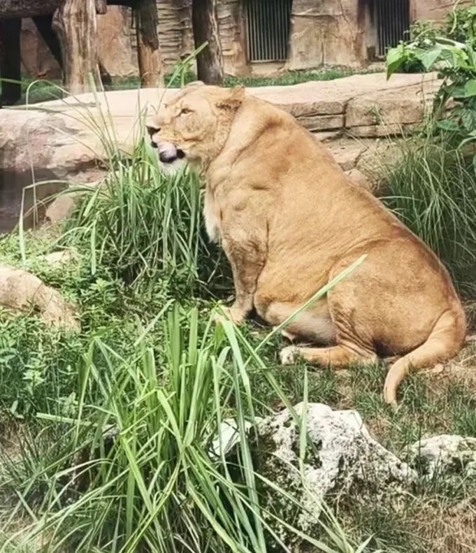 Lioness yang gemuk terlihat di Kebun Binatang Chengdu di CinaKredit: Asiawire