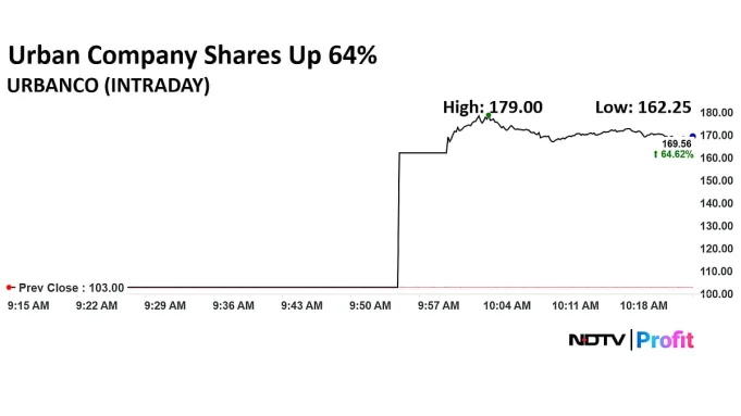Harga saham perusahaan perkotaan naik lebih dari 64% di Rs 169. Ini terjadi setelah daftar bintang di bursa saham hari ini dengan premi 57% atas harga masalah.