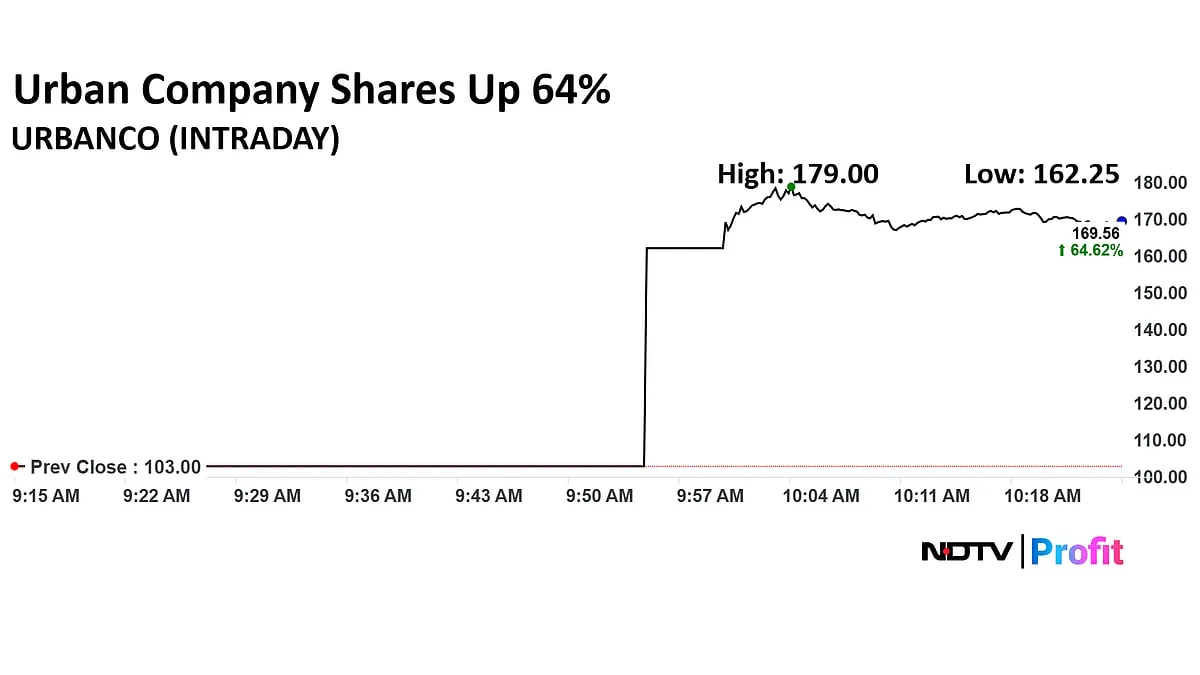 Setelah debut bintang di pertukaran dengan premi 57%, saham perusahaan perkotaan memperbesar. Harga saham naik di Rs 169,3 pada pukul 10:10 pagi.