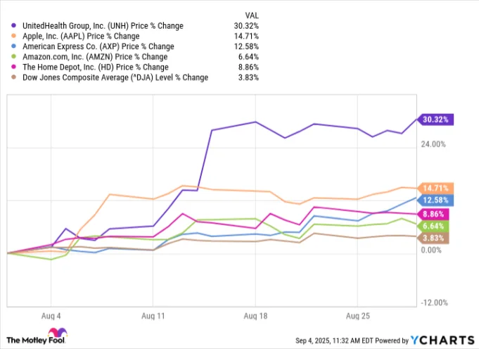 Agustus 2025 adalah bulan besar untuk beberapa saham di Rata -rata industri Dow Jones Sementara indeks, yang melacak 30 dari perusahaan publik yang paling berpengaruh di AS, naik 3, 8 % pada bulan itu, ada beberapa outlier yang mendorong kinerja komponen secara keseluruhan bahkan lebih tinggi.