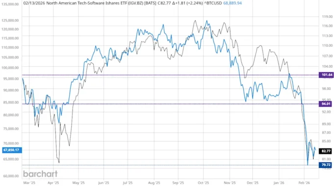 Penarikan Bitcoin semakin mencerminkan aksi jual sektor perangkat lunak dibandingkan perilaku lindung nilai makro.