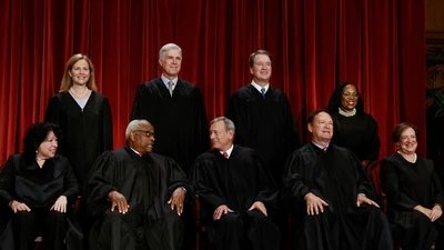 Hakim-hakim liberal Ketanji Brown Jackson, Elena Kagan dan Sonia Sotomayor bergabung dengan hakim-hakim konservatif Amy Coney Barrett, Neil Gorsuch dan John Roberts dalam pemungutan suara untuk menghapuskan tarif.