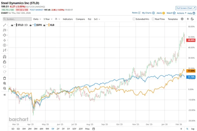 Saham STLD turun 4,4% pada 26 Januari setelah perusahaan merilis hasil Q4 2025, dengan laba bersih turun menjadi $266 juta ($1,82 per saham) dari $404 juta ($2,74 per saham) di Q3. Aksi jual ini didorong oleh penurunan pendapatan operasional operasi baja sebesar 35% menjadi $322 juta, yang disebabkan oleh rendahnya harga realisasi baja, lemahnya permintaan musiman, dan penghentian pemeliharaan terencana yang mengurangi produksi baja lembaran datar sekitar 140.000 ton – 150.000 ton.