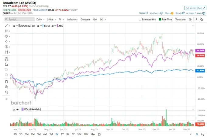 Pada tanggal 13 Februari, DA Davidson memulai liputan di Broadcom dengan peringkat “Netral” dan target harga $ 335, kira-kira sejalan dengan harga saham saat ini, mencatat return satu tahun yang kuat ~ 46 % dari saham tersebut meskipun diperdagangkan mendekati perkiraan nilai wajar. Meskipun mengakui essential Broadcom yang kuat, perusahaan ini juga menyoroti risiko terhadap ketahanan kepemimpinan AI ASIC-nya, dan memperingatkan bahwa pelanggan skala besar dapat semakin menginternalisasi desain chip dan rantai pasokan seiring waktu, sehingga berpotensi menekan perekonomian pemasok dalam jangka panjang.