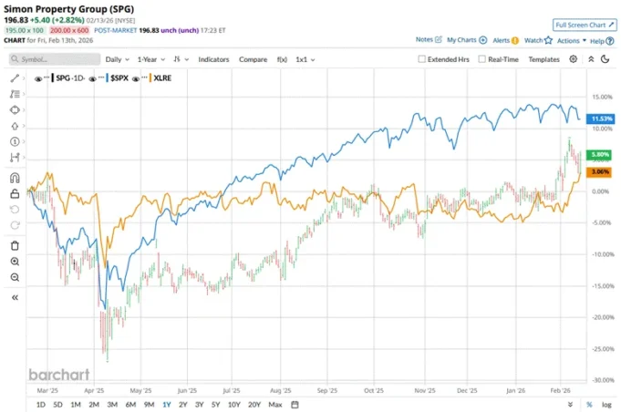 Saham perusahaan telah tertinggal dibandingkan pasar yang lebih luas selama setahun terakhir, namun telah mengungguli pada tahun 2026 Saham SPG telah tumbuh 5, 7 % selama 52 minggu terakhir dan telah tumbuh 6, 3 % secara YTD. Sebagai perbandingan, Indeks S&P 500 ($SPX) telah menghasilkan keuntungan sebesar 11, 8 % selama setahun terakhir dan sedikit menurun pada tahun 2026