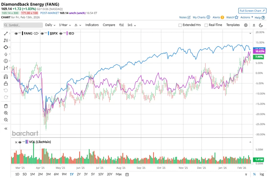 Saham perusahaan minyak dan gas independen terkemuka ini memiliki kinerja buruk di pasar secara luas selama setahun terakhir. FANG telah naik 8,3% selama jangka waktu ini, sedangkan Indeks S&P 500 ($SPX) yang lebih luas telah menguat hampir 11,8%. Namun, pada tahun 2026, saham FANG naik 12,5%, melampaui penurunan marginal SPX secara YTD.