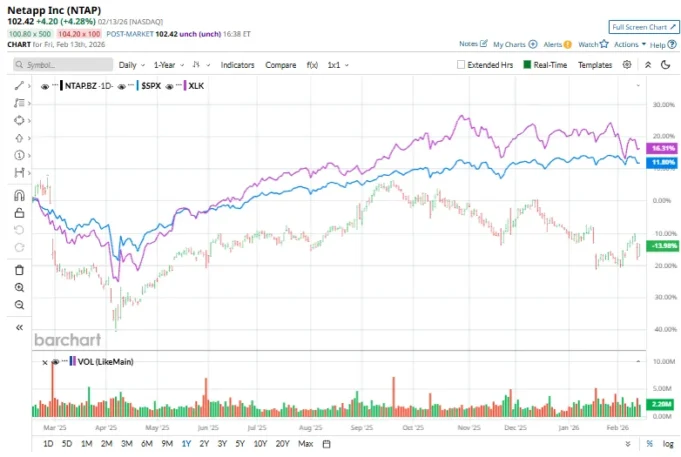 Saham NetApp jauh tertinggal dibandingkan pasar yang lebih luas selama setahun terakhir, turun 13 %, sementara Indeks S&P 500 ($SPX) telah menguat 11, 8 %. Pada tahun 2026, saham NTAP turun 4, 4 %, dibandingkan dengan penurunan kecil SPX.