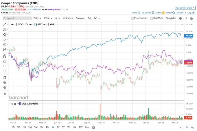 Saham perusahaan perangkat medis worldwide ini memiliki kinerja buruk di pasar yang lebih luas selama setahun terakhir. COO telah menurun 7 % selama jangka waktu ini, sementara Indeks S&P 500 ($SPX) telah menguat hampir 11, 9 %. Pada tahun 2026, saham COO turun sedikit, sejalan dengan penurunan tipis SPX secara YTD.