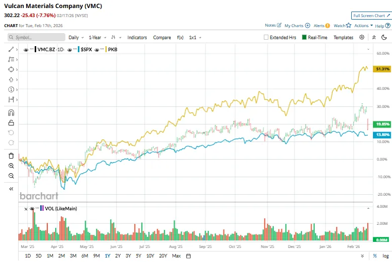 Saham-saham produsen agregat konstruksi terbesar memiliki kinerja buruk di pasar yang lebih luas selama setahun terakhir. VMC telah naik 11, 7 % selama jangka waktu ini, sedangkan Indeks S&P 500 ($SPX) yang lebih luas telah menguat hampir 11, 9 %. Namun pada tahun 2026, saham VMC naik 6 %, melampaui penurunan marjinal SPX secara YTD.