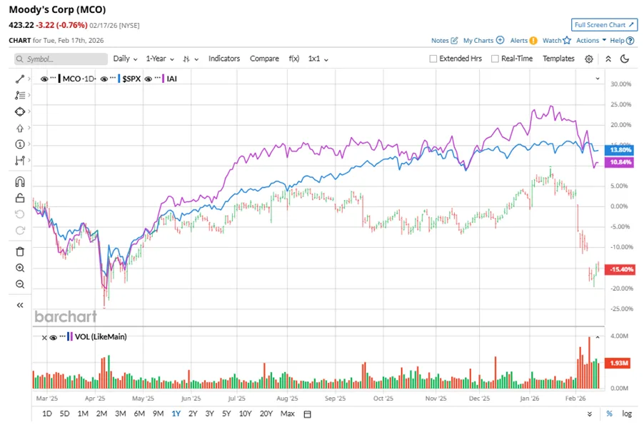 Saham raksasa pemeringkat kredit ini berkinerja buruk di pasar secara luas selama setahun terakhir. MCO telah turun 19, 1 % selama jangka waktu ini, sementara Indeks S&P 500 ($SPX) telah menguat hampir 11, 9 %. Pada tahun 2026, saham MCO turun 17, 2 %, dibandingkan dengan penurunan kecil SPX secara YTD.