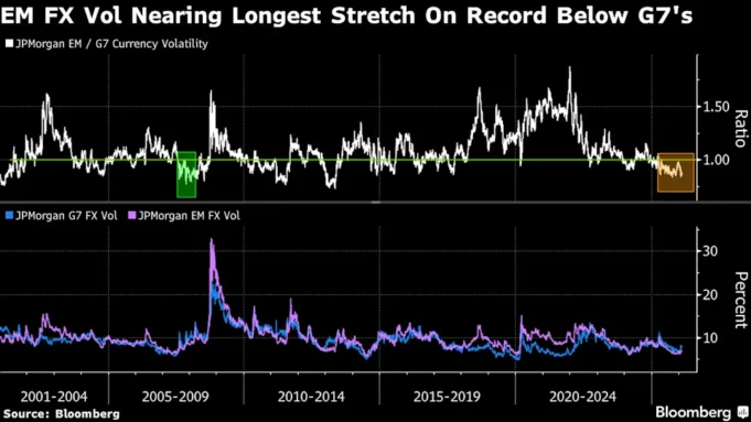 (Bloomberg)– Mata uang negara berkembang terbukti lebih stabil dibandingkan mata uang negara maju, yang menurut beberapa capitalist bisa menjadi yang terpanjang dalam lebih dari dua dekade.