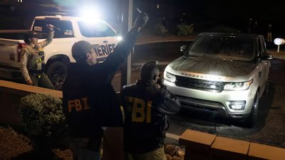 Deputi FBI dan Departemen Constable Pima Area memproses bukti dari Array Wanderer abu-abu model terbaru saat mereka menyelidiki hilangnya Nancy Guthrie. (REUTERS)