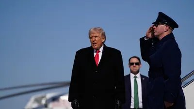 Presiden AS Donald Trump bersiap untuk menaiki Flying force One pada 13 Februari 2026 di Pangkalan Gabungan Andrews, Maryland. (Getty Pictures melalui AFP)