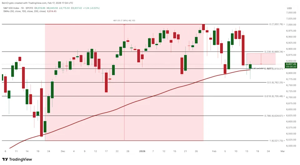 Hal ini serupa dengan skenario akhir November 2025. Indeks kehilangan EMA 100 hari pada tanggal 28 November namun merebutnya kembali dengan cepat pada sesi berikutnya, memicu reli yang kuat. S&P 500 naik sekitar 7,38% dari akhir November hingga akhir Januari.