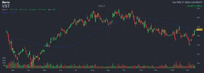 Garis tren yang dimaksud adalah rata-rata pergerakan ekuitas selama 80 hari. Menurut Analis Kuantitatif Senior Schaeffer, Rocky White, peristiwa “crossover” ini telah terjadi sembilan kali selama lima tahun terakhir, setelah itu saham Vistra naik satu bulan kemudian sebesar 78%, dengan rata-rata kenaikan sebesar 8,3%. Dari posisi saat ini, langkah serupa akan membuat saham diperdagangkan kembali di atas $188 untuk pertama kalinya sejak November.