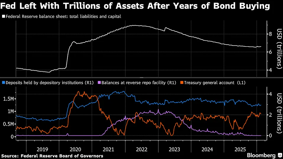 Meskipun tidak mungkin memulai kembali QT, The Fed dapat secara bertahap mengurangi laju pembelian T-bill dari $ 40 miliar per bulan saat ini, atau menghentikannya sama sekali, menurut ahli strategi Citigroup Inc. Alejandra Vazquez Plata dan Jason Williams. Analisis mereka menunjukkan bahwa meskipun RMP dihentikan pada bulan Juni, cadangan devisa tidak akan turun secara signifikan pada bulan Desember 2026