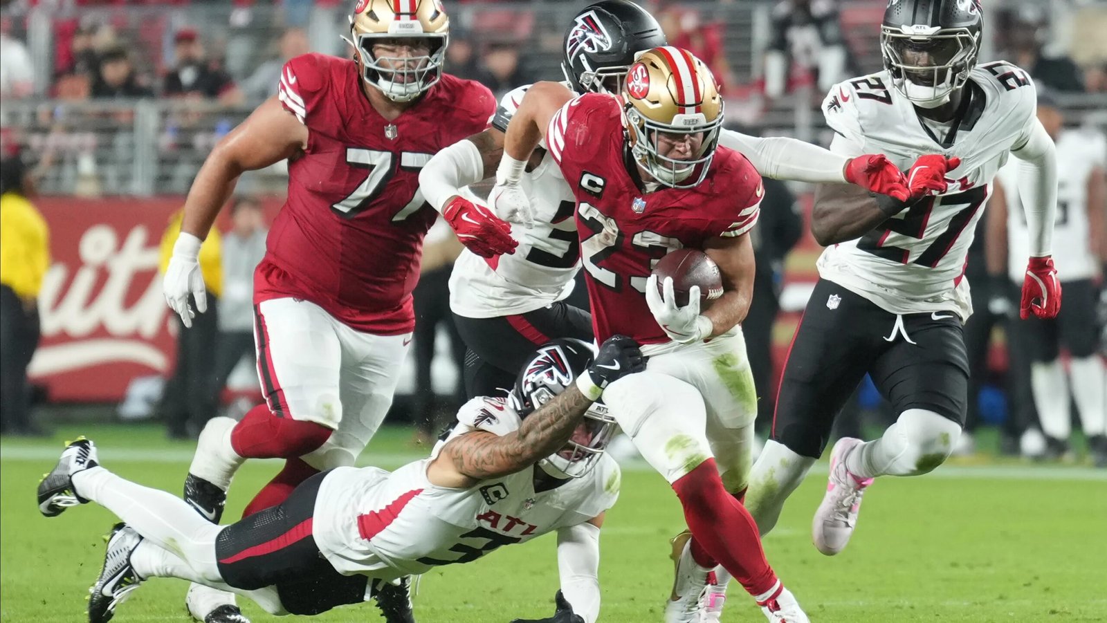 49 ers telah berjuang untuk menemukan umpannya tanpa Nick Bosa di lapangan. Huff menjawab panggilan itu Minggu malam dengan dua pukulan quarterback, 1,0 karung, satu tekel untuk kekalahan dan pukulan paksa. Dia adalah mimpi buruk bagi lini ofensif Falcons di drive terakhir Atlanta. Mereka melemparkan banyak pemblokir ke arahnya dan mencoba meninggalkannya satu lawan satu dan dia berada di lini belakang hampir di setiap pukulan. Pertahanan San Francisco masih membutuhkan umpan yang lebih konsisten, namun bisa pulang ke rumah dalam situasi umpan yang jelas adalah awal yang baik.