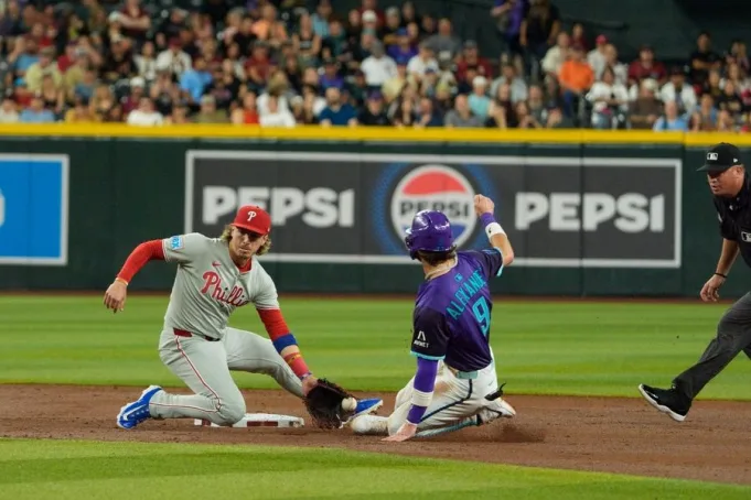 Homer solo Bader dari Arizona Starter Ryne Nelson mengikat permainan di 2-2 di urutan kelima, dan single RBI Weston Wilson memberi Phillies keunggulan 3-2 di urutan keenam. Jalen Beeks (5-2), yang kedua dari lima pitcher Arizona, mengambil kerugian.