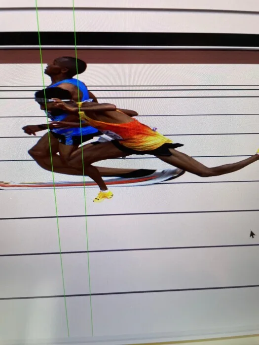 Alphonce Simbu dari Tanzania menyisir Amanal Petros dari Jerman dalam foto yang selesai untuk maraton putra di Kejuaraan Dunia dan Kejuaraan Lapangan.