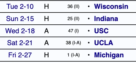 Meskipun menantang, Illinois masih memiliki jalur yang layak untuk menjadi unggulan No. 1 jika dapat menang di musim reguler dan menerima bantuan dari proyeksi unggulan teratas seperti UConn, Michigan, dan Battle each other. Tim-tim tersebut perlu menderita kerugian tambahan agar pintu bisa terbuka.