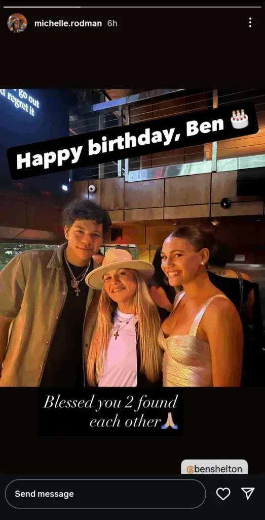Namun keinginan Shelton tidak berhenti sampai di situ. Ibu Rodman, Michelle, juga melalui Instagram story-nya untuk menyampaikan salamnya, berbagi foto bersama Shelton dan putrinya sambil mengungkapkan kebahagiaannya atas semakin eratnya ikatan pasangan tersebut.