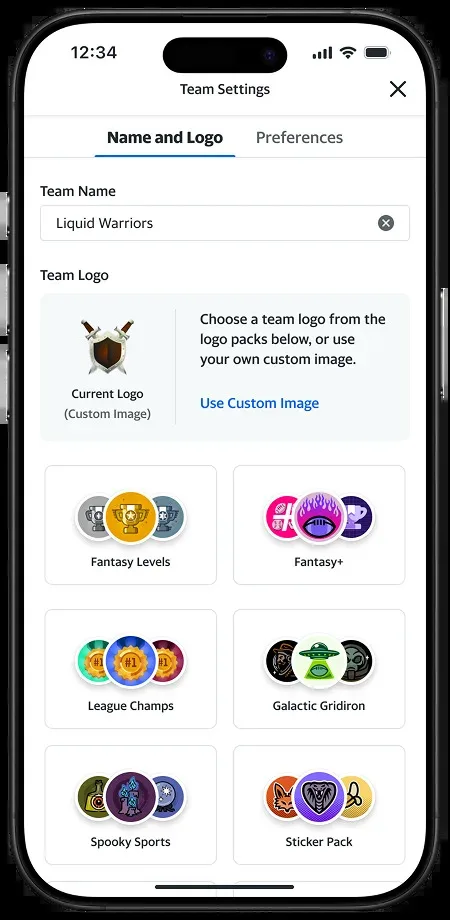 Dari layar tim Anda, ketuk perlengkapan pengaturan untuk membuka pengaturan tim. Dari sana, temukan paket yang ingin Anda buka, pilih logo dan ketuk Simpan Perubahan. Anda siap!